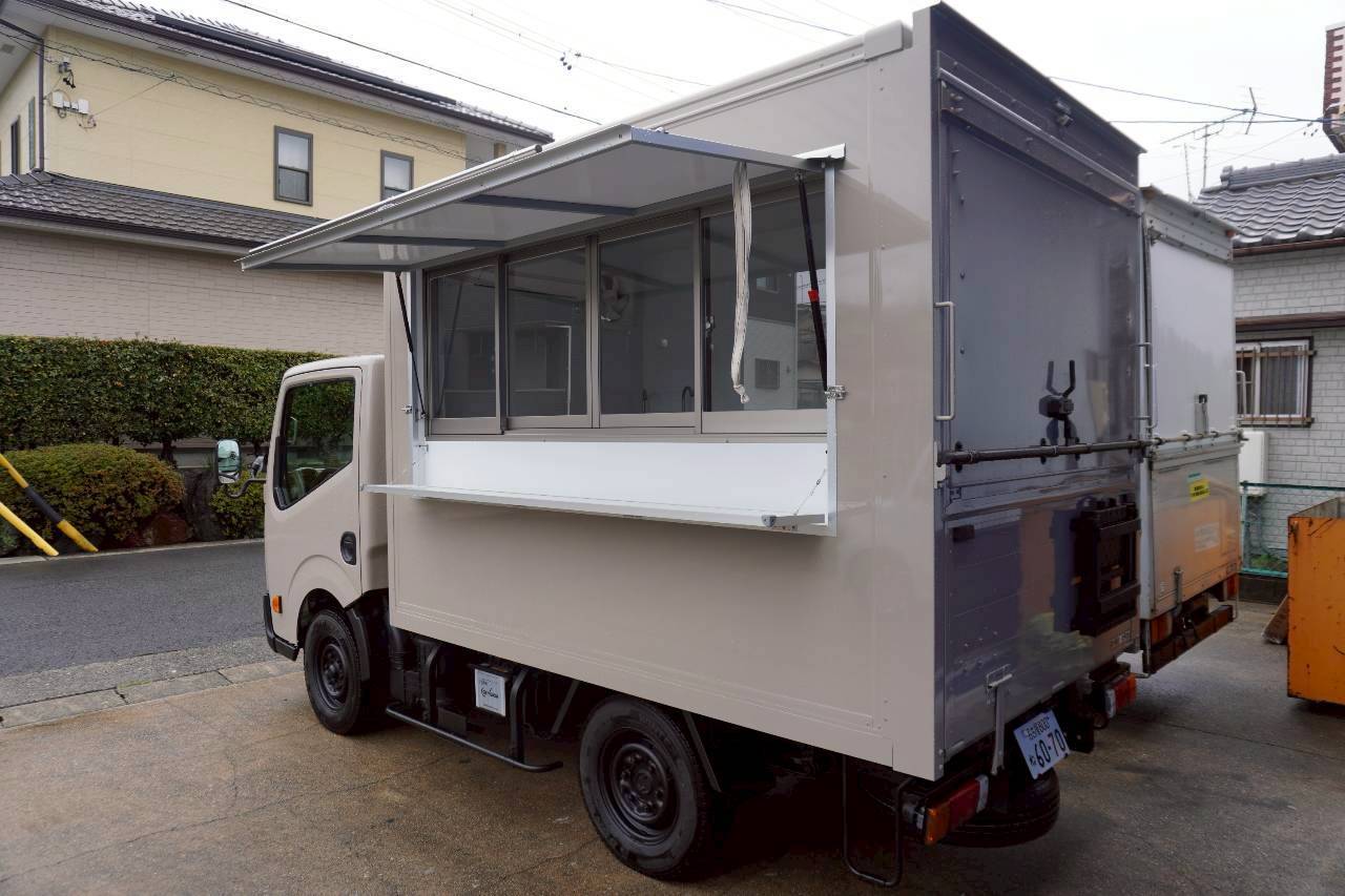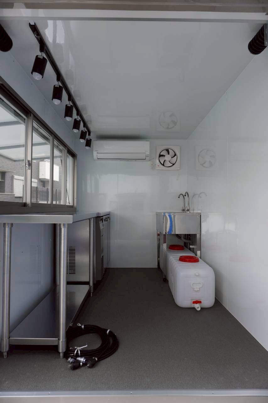 紹介文 愛知県でベビーカステラを移動販売をされているお客様からトラックタイプのキッチンカーをご依頼いただき納車しました。当社のCプランをベースに全塗装、エアコン、コールドテーブル、タペストリー、外部電源&コンセント追加、ラッピングをオプションでご注文いただきました。愛知県でこちらのキッチンカーを見かけられましたら是非お立ち寄りください。繁盛することを祈願しております!