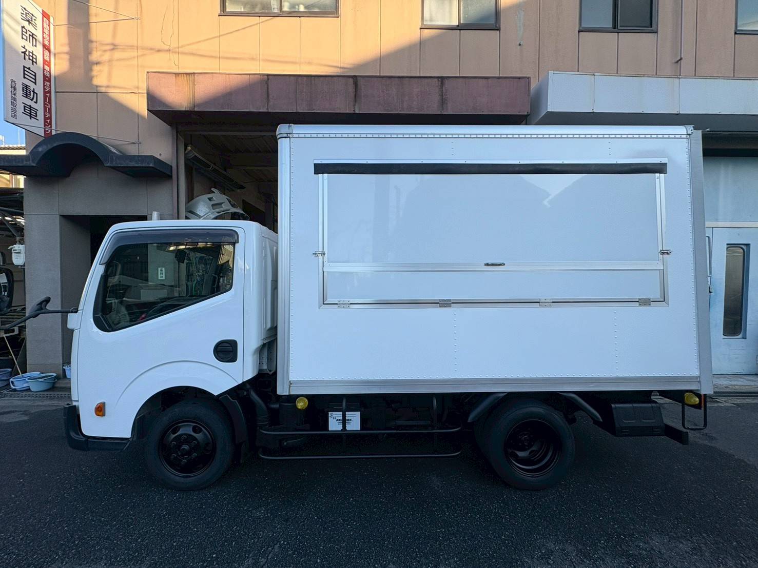 紹介文 大阪府でドリンクを販売をされるお客様にトラックタイプのキッチンカーを納車しました。当社のCプランのトラックタイプキッチンカーをご注文いただきました。大阪府でこちらのキッチンカーを見かけられましたら是非お立ち寄りください。繁盛することを祈願しております!