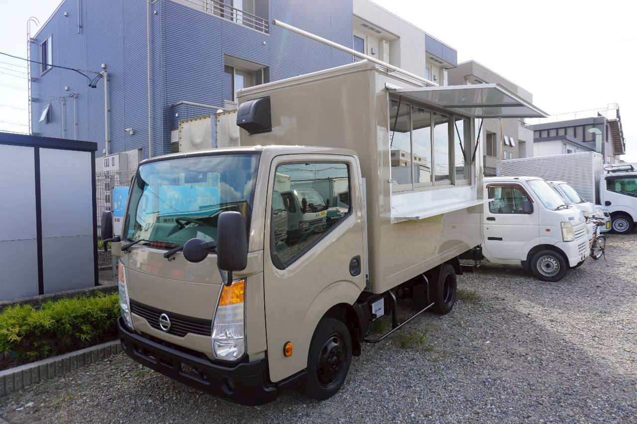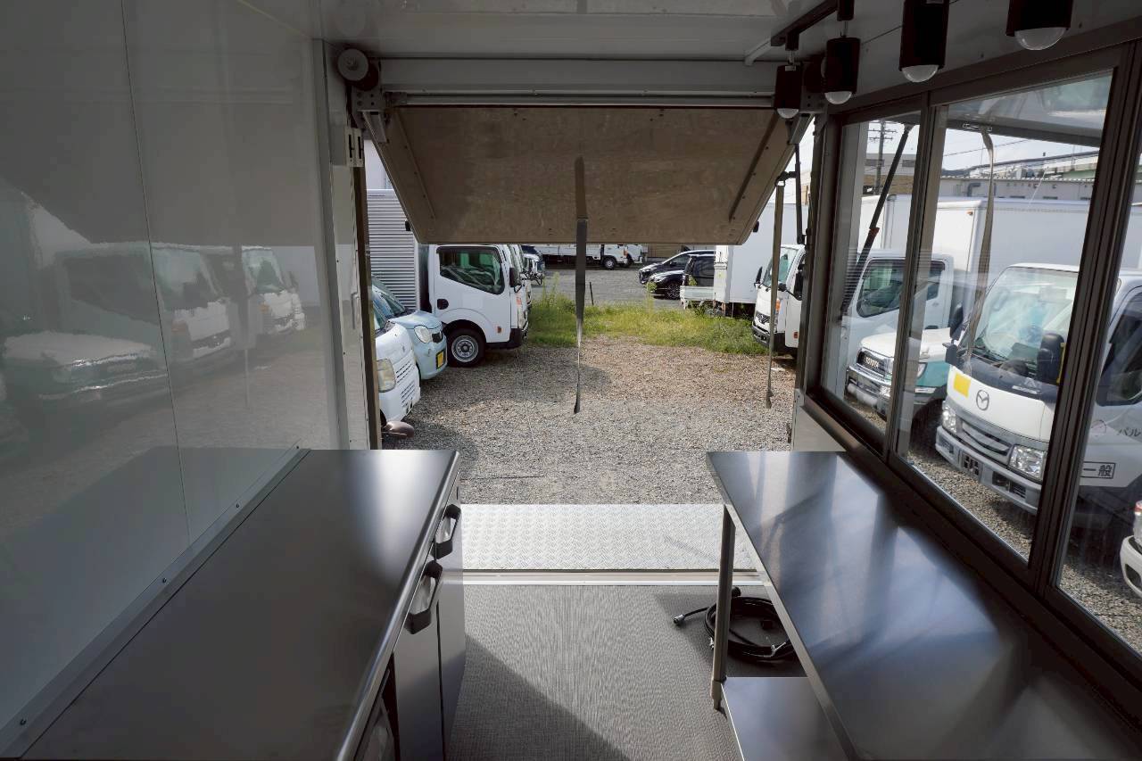 紹介文 愛知県でキッチンカーのレンタルをされているお客様にトラックタイプのキッチンカーを納車しました。当社のCプランをベースに全塗装、網戸、コールドテーブル、タペストリー固定器具、バックカメラ、ドライブレコーダー、外部電源・コンセント追加をオプションでご注文いただきました。繁盛することを祈願しております!