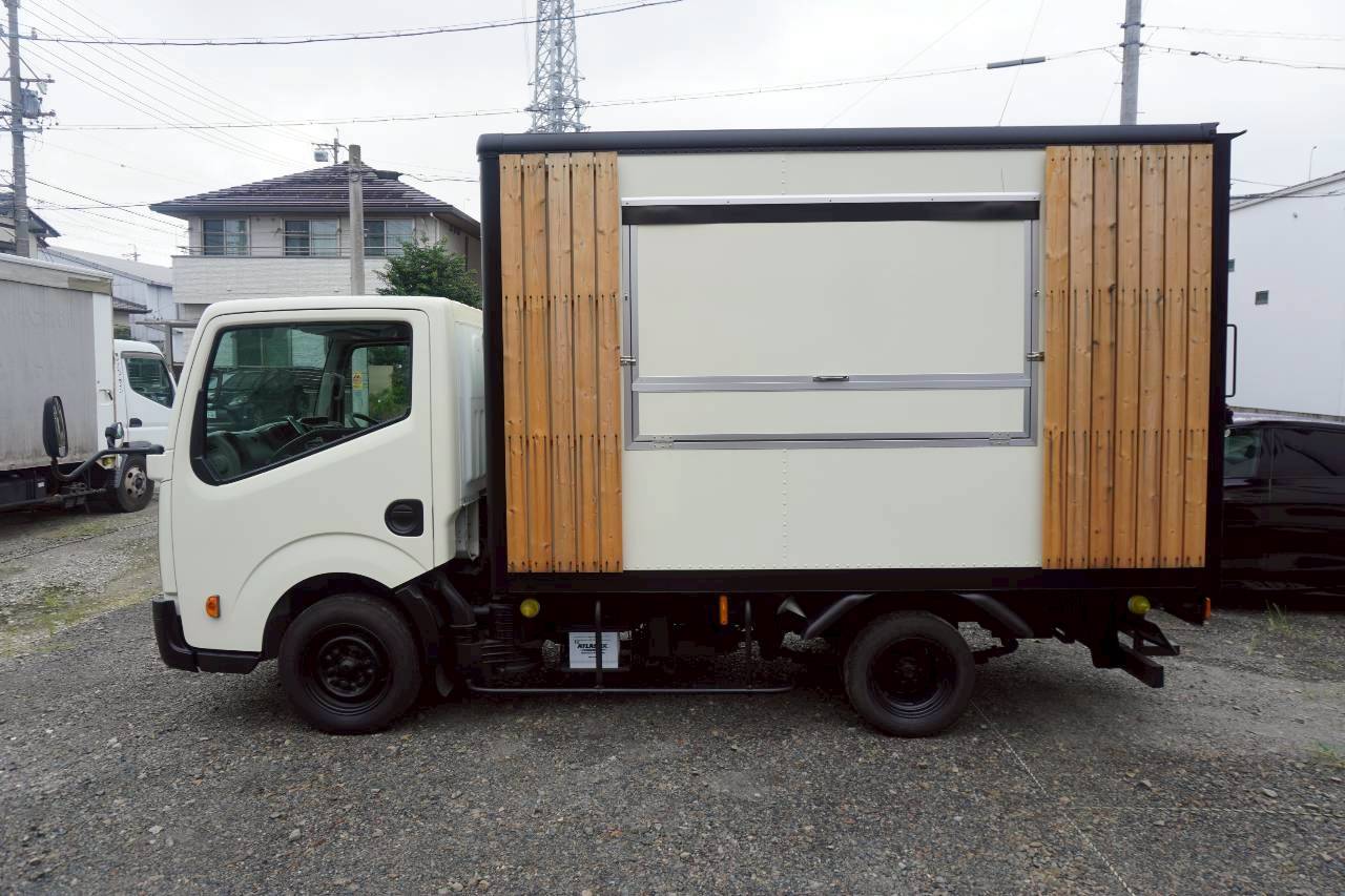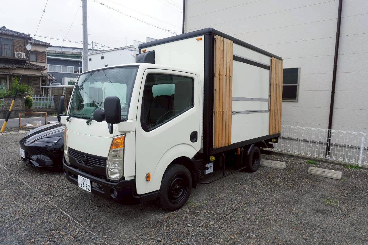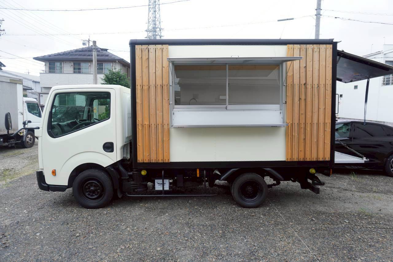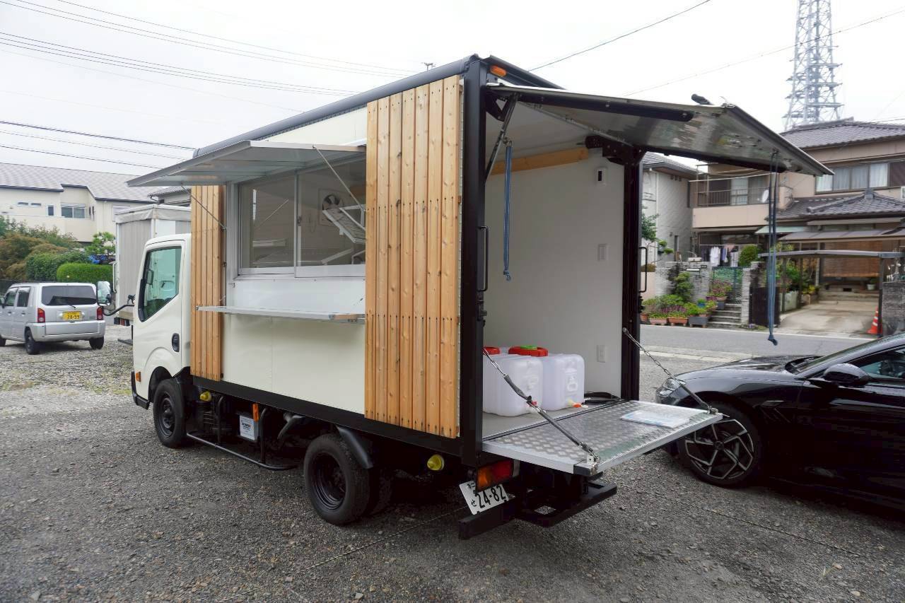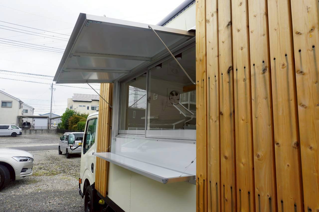 紹介文 | 愛知県で移動販売をされるお客様にトラックタイプのキッチンカーを納車しました。当社のCプランをベースに全塗装、外装2枚窓、両サイド木目、バックステップ、コンセント追加をオプションでご注文いただきました。愛知県でこちらのキッチンカーを見かけられましたら是非お立ち寄りください。繁盛することを祈願しております! |